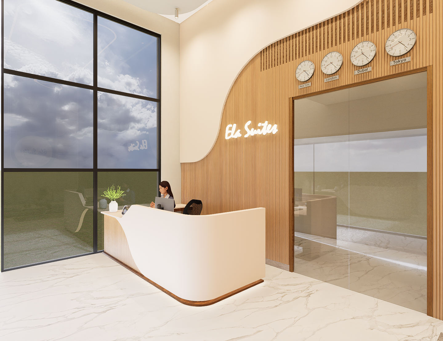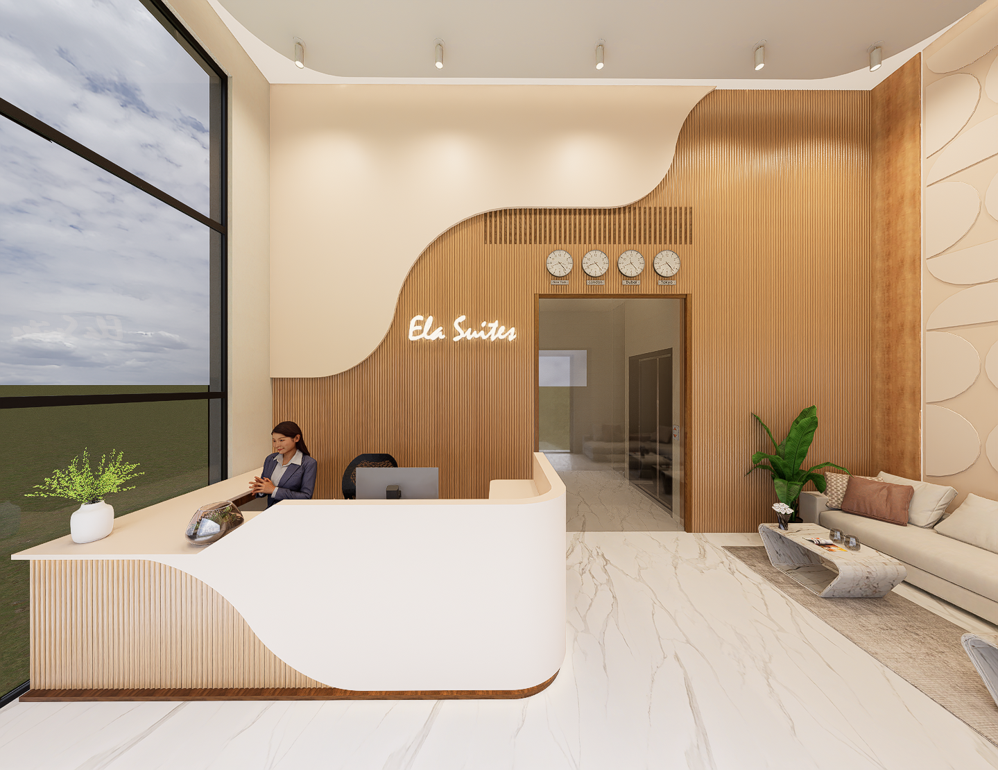 A warm, airy welcome the moment you arrive. The double-height lobby features premium finishes, natural light and a calm, spacious ambience.