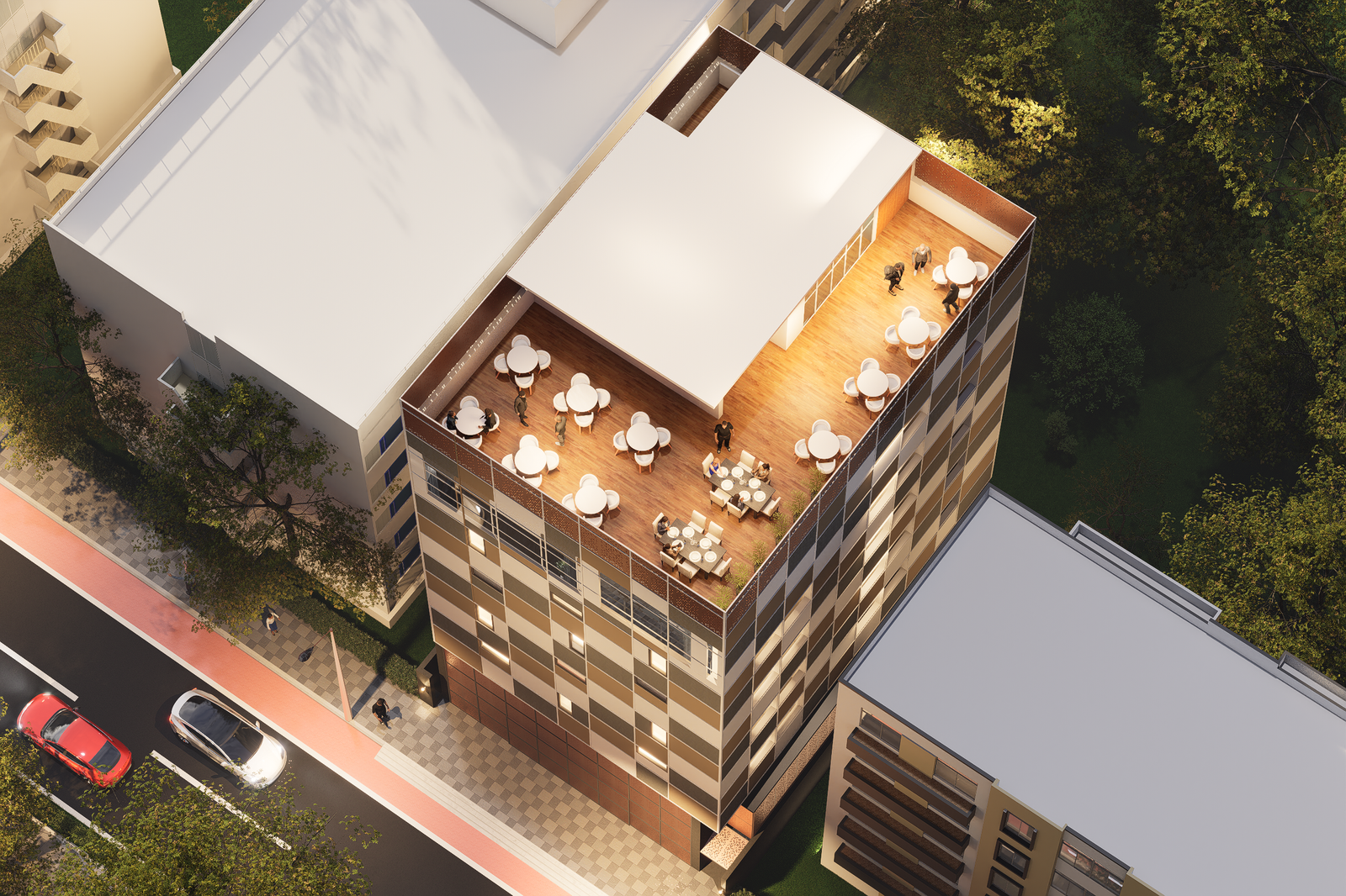 A multi-use open-air terrace crafted for evening relaxation, small gatherings and outdoor work.